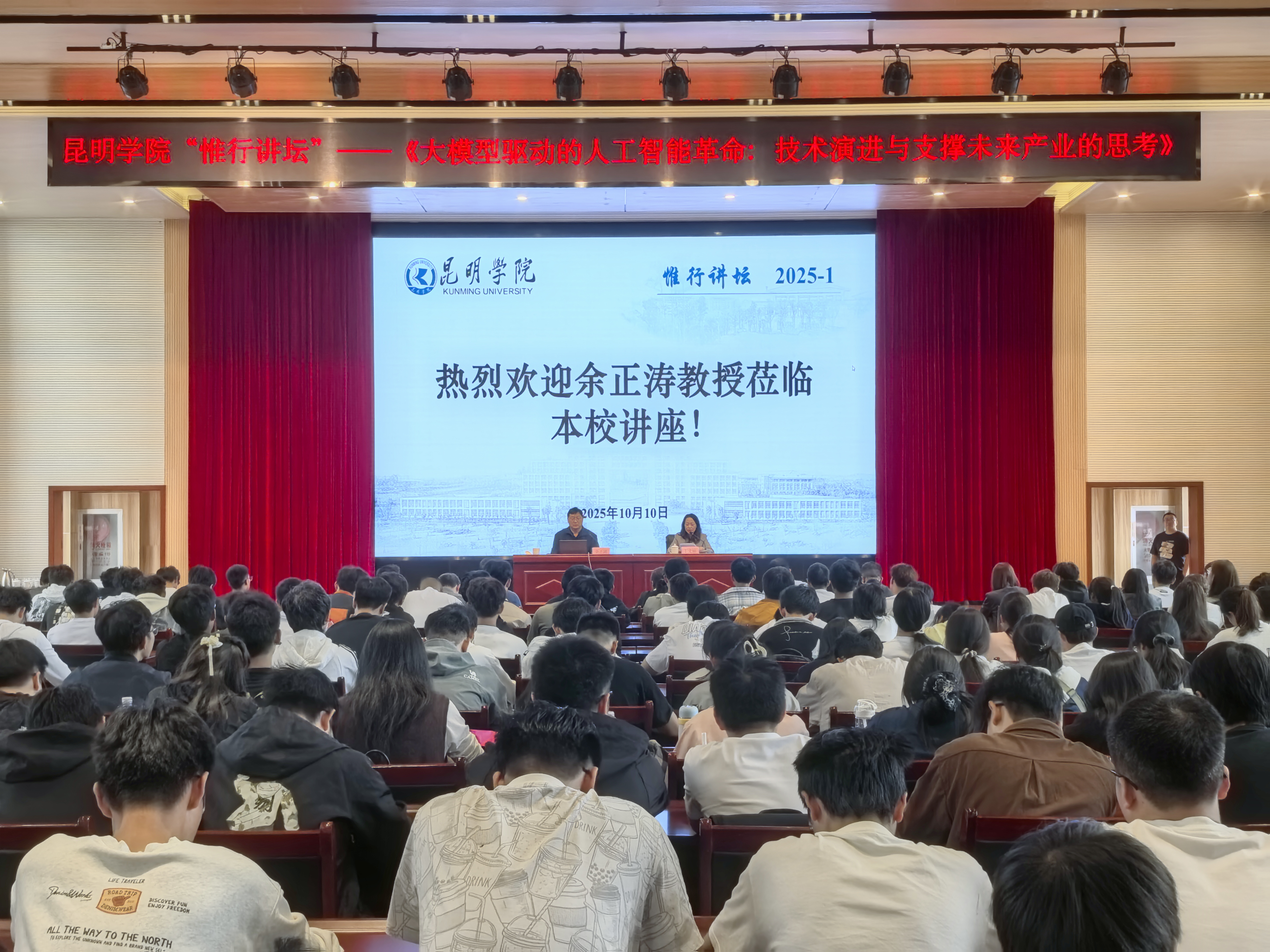10月10日下午,best365足球官网“惟行讲坛”在博学报告厅举行,讲座由云南省人工智能重点实验室主任余正涛教授主讲。学校党委副书记、校长丁文丽教授主持讲座,科技处、经济管理学院、信息工程学院、建筑工程学院、机电工程学院等280余名师生参加。