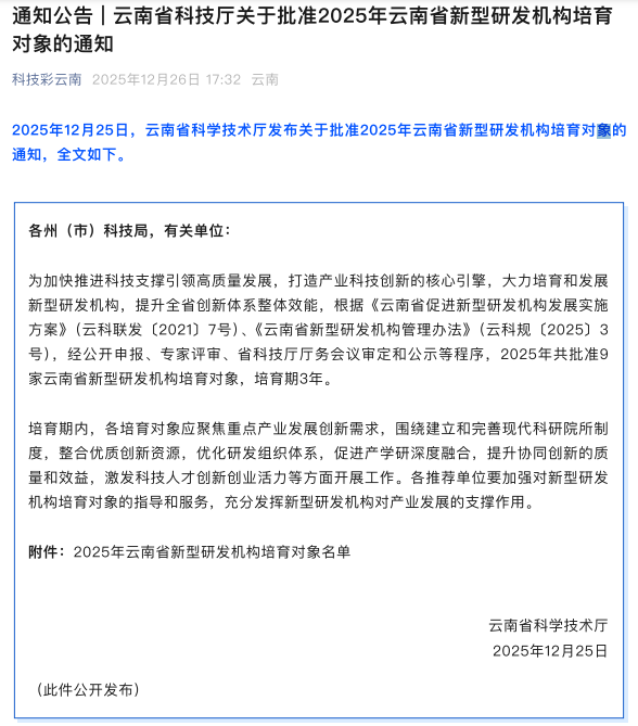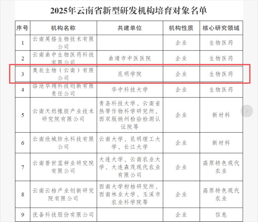 12月26日,云南省科技厅发布《云南省科技厅关于批准2025年云南省新型研发机构培育对象的通知》,best365足球官网医学院秦静副教授团队与奥辰生物(云南)有限公司潘兴华教授团队联合申报的“生物医药”领域新型研发机构成功获批,这标志着best365在深化产教融合、服务地方生物医药产业发展方面取得了又一重要突破。