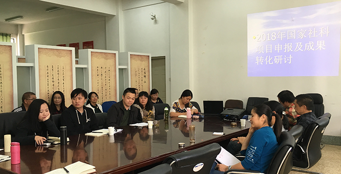 院系相关负责老师介绍了各自申报国家课题的经验和体会,大致有以下几点:1.选题要有价值(或是现实需要或是学术价值);2.选题最好和地域性、民族性、边疆性等结合起来;3.要沉下心来积累;4.要多参加学术会议,了解学术动态;5.课题论证活页要反复修改,多读几次,做到精益求精。