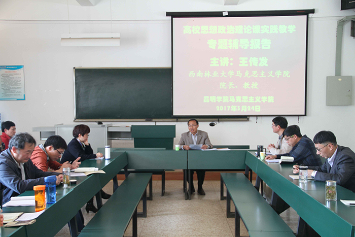 西南林业大学经过多年探索,在高校思政课实践教学方面摸索出一条颇具成效的路子,积累了丰富的实践经验,学校的思政课实践教学活动也曾多次受到高校工委和教育厅的表扬。为了加强学习交流,迎接思政课优秀等级评估和2018年教育部的本科教学审核评估,best365马克思主义学院经多方努力,邀请王传发教授来best365作专题辅导。