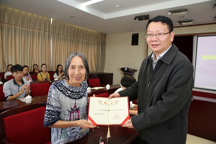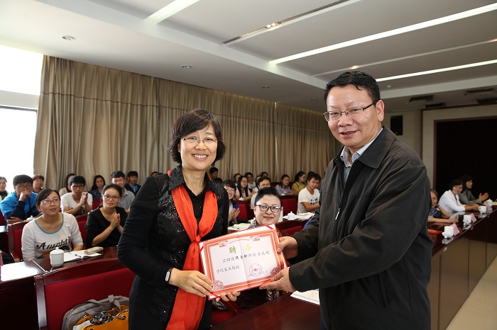| 陈世波书记向隋曼龄教授颁发best365足球官网客座教授聘书 |