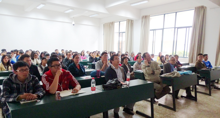 岑教授的报告题目为“2016年香港国际数学奥林匹克竞赛实况简介—兼谈国际数学奥赛的历史”,岑教授向在场师生介绍今年7月份在香港科技大学举行的第57届国际数学奥林匹克竞赛情况及国际数学奥赛的历史。岑教授的讲座让大家领略国际数学奥林匹克竞赛庄严隆重开闭幕仪式风采、从中感受到世界各国对数学重视,激发对数学的热爱之情。郭教授的报告题目为“非构作性证明和构作性证明”,他以两个例子为例给大家展示了非构作性证明和构作性证明,所选例子精巧而易懂,并深刻地展示了非构造性、构造性证明的特点。郭教授博学求精的学者风范给师生们留下了深刻的影响。