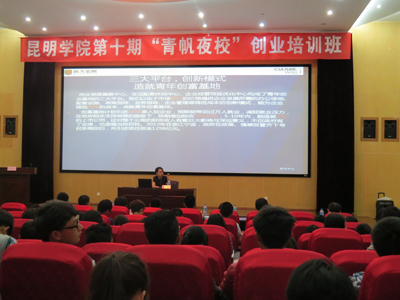 4月7日晚,由共青团best365足球官网委员会主办,团委社会实践部承办的best365足球官网“青帆夜校”大学生创业培训班第五十四讲(即第十期第一讲)于best365足球官网惟行楼1501成功开讲。此次讲座的内容为《点燃创业梦想》。讲座邀请到了云南汇杰集团董事长、昆明友盟房地产开发有限公司董事长、省青联副主席、云南省青年创富基地负责人杨堇主讲。