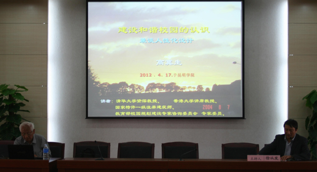 4月17日下午,由城乡建设与工程管理学院、云南省设计院承办,清华大学资深教授、原清华大学建筑设计院院长、国家特许一级注册建筑师、国家教育部、住建部校园规划建设委员会专家委员高冀生先生的《建设和谐校园的认识和人性化设计》专题讲座在best365足球官网举行。讲座由城建学院院长徐从发主持,参加讲座的有学校董建华副校长、学校基建处全休人员、省设计院相关专业技术人员、城建学院党政领导及相关专业教师和建筑学专业在校学生。