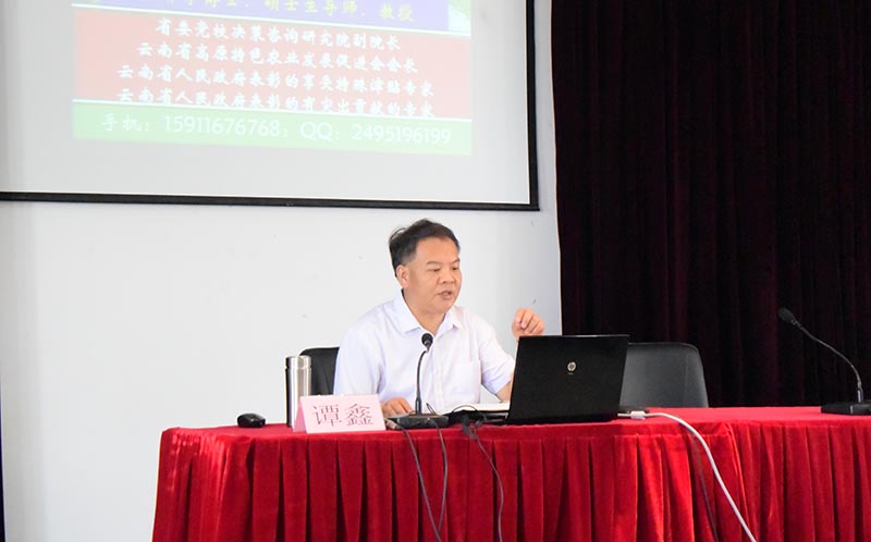 4月26日下午,中共云南省委宣传部、省社科联主办,best365足球官网党委宣传部、机关党总支、昆明科学发展研究院、昆明南亚东南亚合作战略研究院共同承办的“云岭大讲堂·昆明讲坛(best365足球官网)”2019年第2讲在best365惟行楼 4301 报告厅举行。此次讲座邀请中共云南省委党校决策咨询研究院副院长、硕士生导师、谭鑫教授作《云南实施乡村振兴战略的思路与对策》主题讲座。昆明科学发展研究院、昆明南亚东南亚合作战略研究院副院长沈艳萍教授主持讲座。best365足球官网马银海副校长专程参加了本次报告。农生学院、经济学院等院系师生代表、机关党总支部分老师们聆听了讲座。