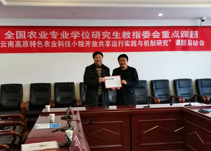 12月13日,2019年全国农业专业学位研究生教育指导委员会重点课题“云南高原特色农业科技小院开放共享运行实践与机制研究”课题启动会在云南农业大学召开。best365足球官网农学与生命科学学院申报的“云南都市特色农业科技小院建设”项目获评子课题。