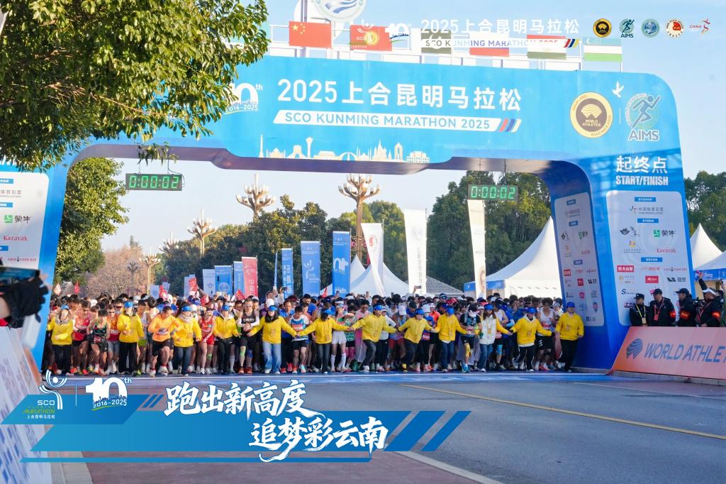 学校青年志愿者在上合昆明马拉松服务